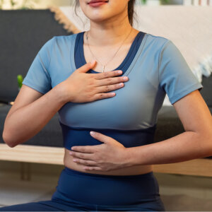 腹式呼吸は、横隔膜や腹横筋をしっかり使うトレーニングです。これらは体幹の深部にある筋肉で、鍛えることでウエストの引き締めや姿勢改善に繋がります。