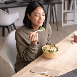 副菜や味噌汁、サラダ、メインの肉や魚をまず食べ、ご飯は締めに回すとシンプルに実践できます。パスタや丼ものは、サラダや小鉢、スープなどを添えるようにし、先に食べると良いでしょう。