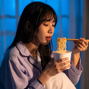 夜遅い食事の場合、食事を終えてから寝るまでの時間が短くなりやすく、食後の代謝活動がほとんど行われません。これが翌日のむくみや体重増加にも影響します。