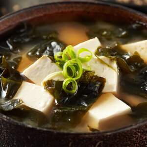 ・味噌汁にわかめを加える