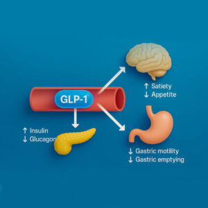 よく噛んで食べることで、GLP-1など満腹ホルモンの分泌が増加することが確認されています。これにより満腹感が得られやすくなり、食べ過ぎを防ぎやすくなるといった効果が期待できます。これは経験的にも納得感があるのではないでしょうか。